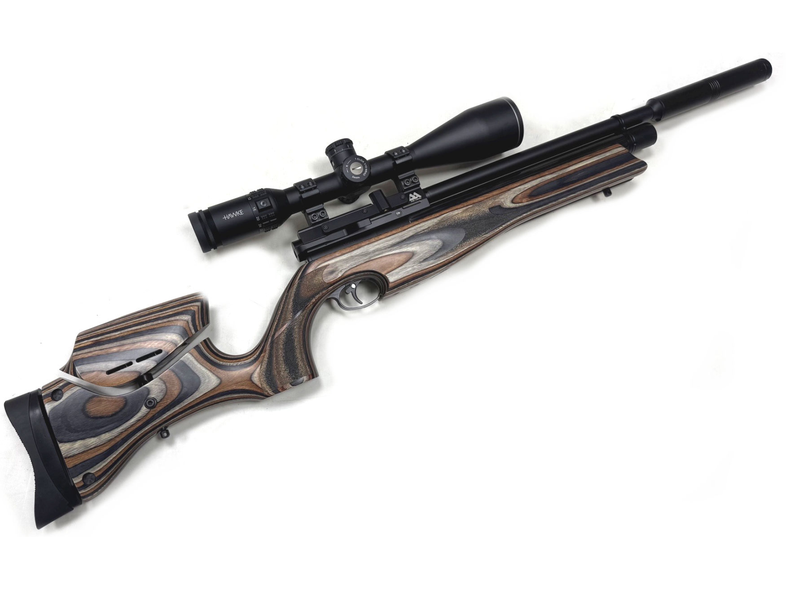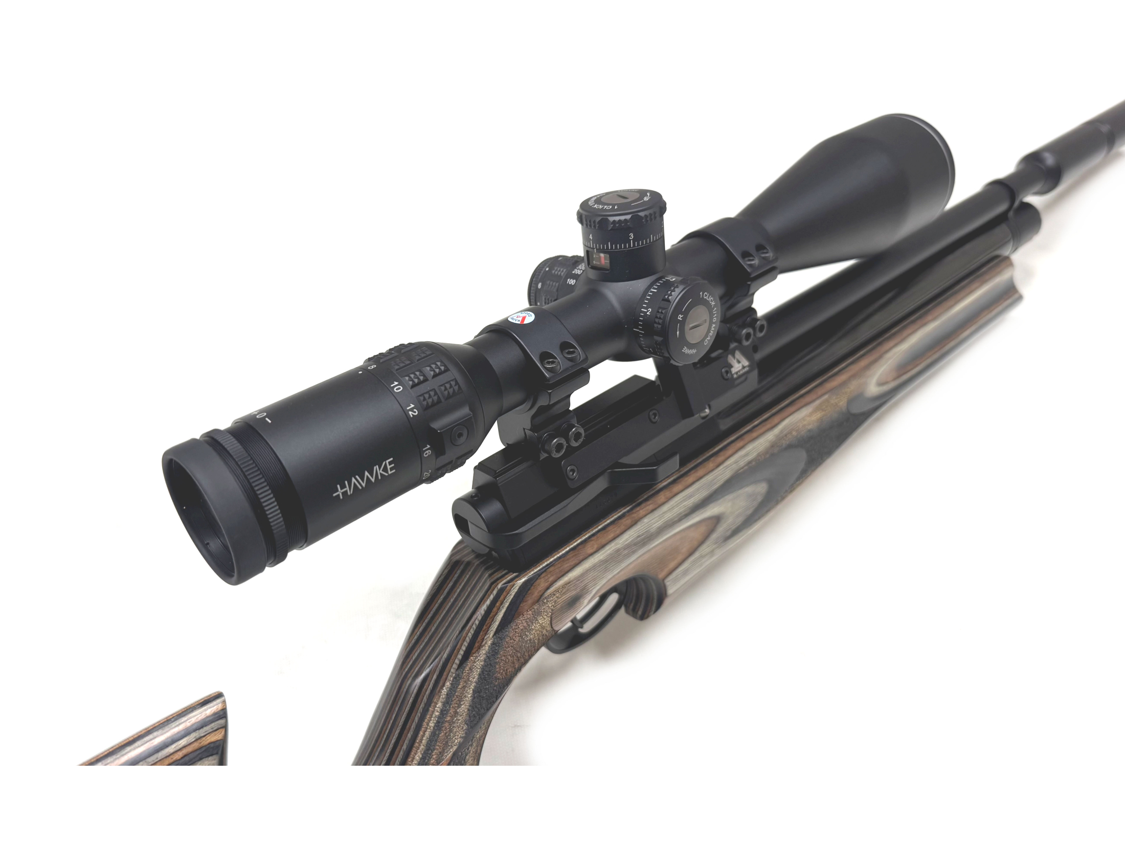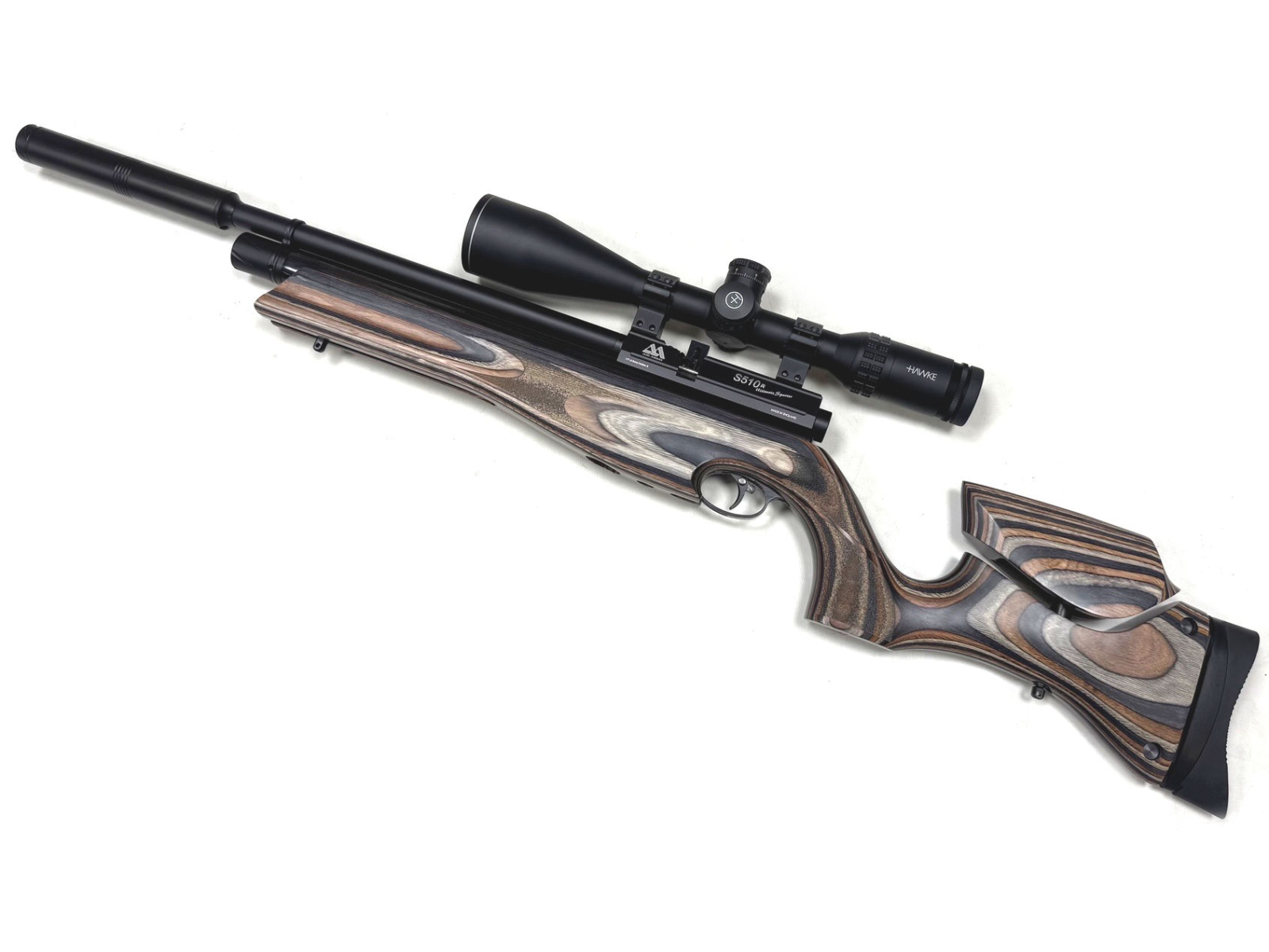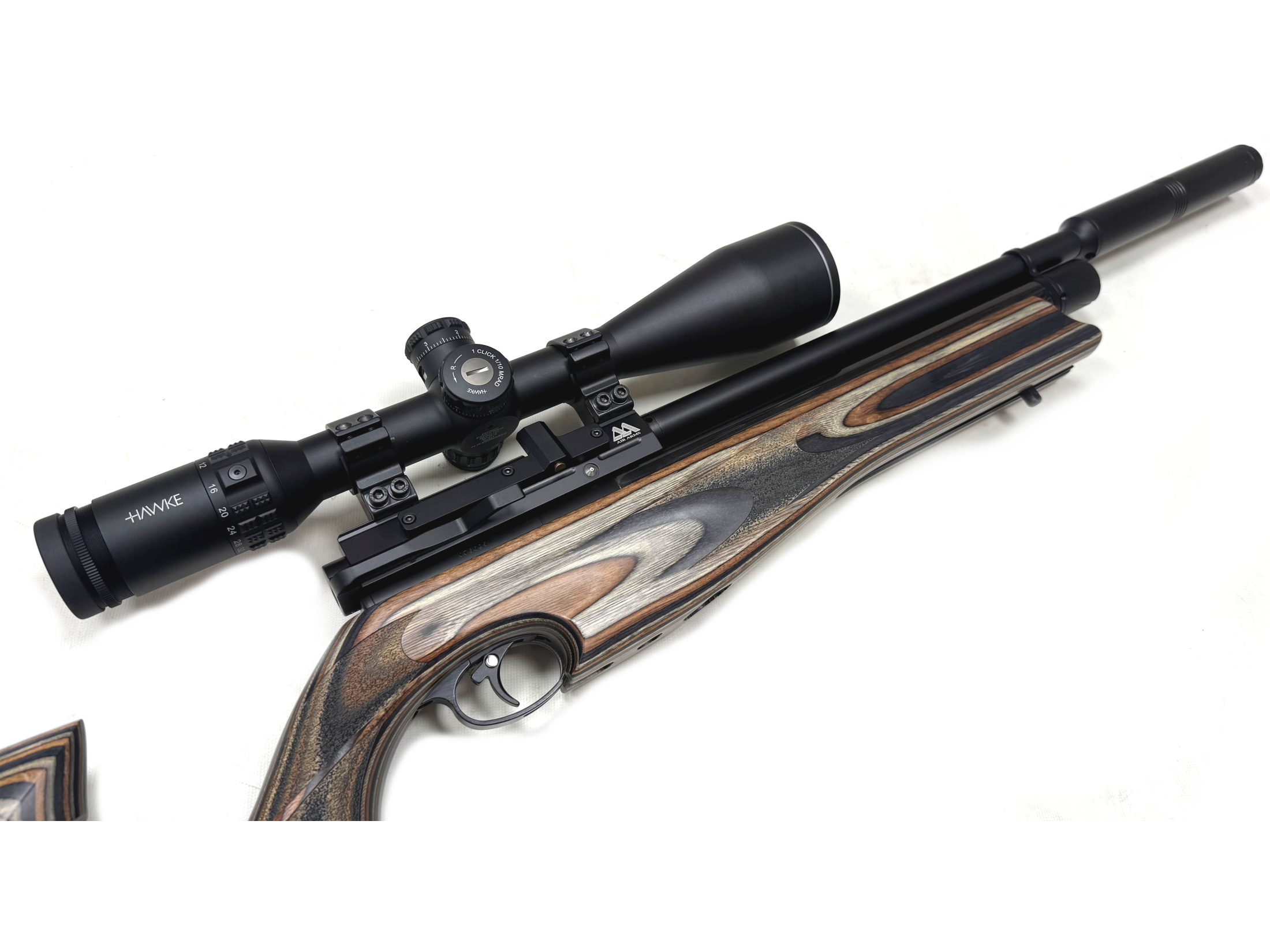 Complete with a Hawke Sidewinder 8-32x56 scope, two magazines and a filler adapter.