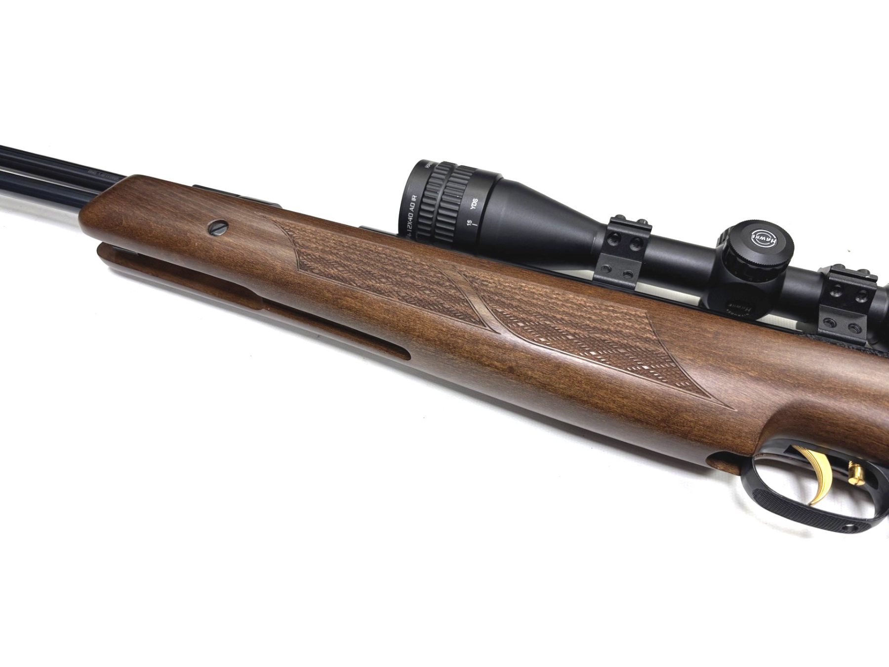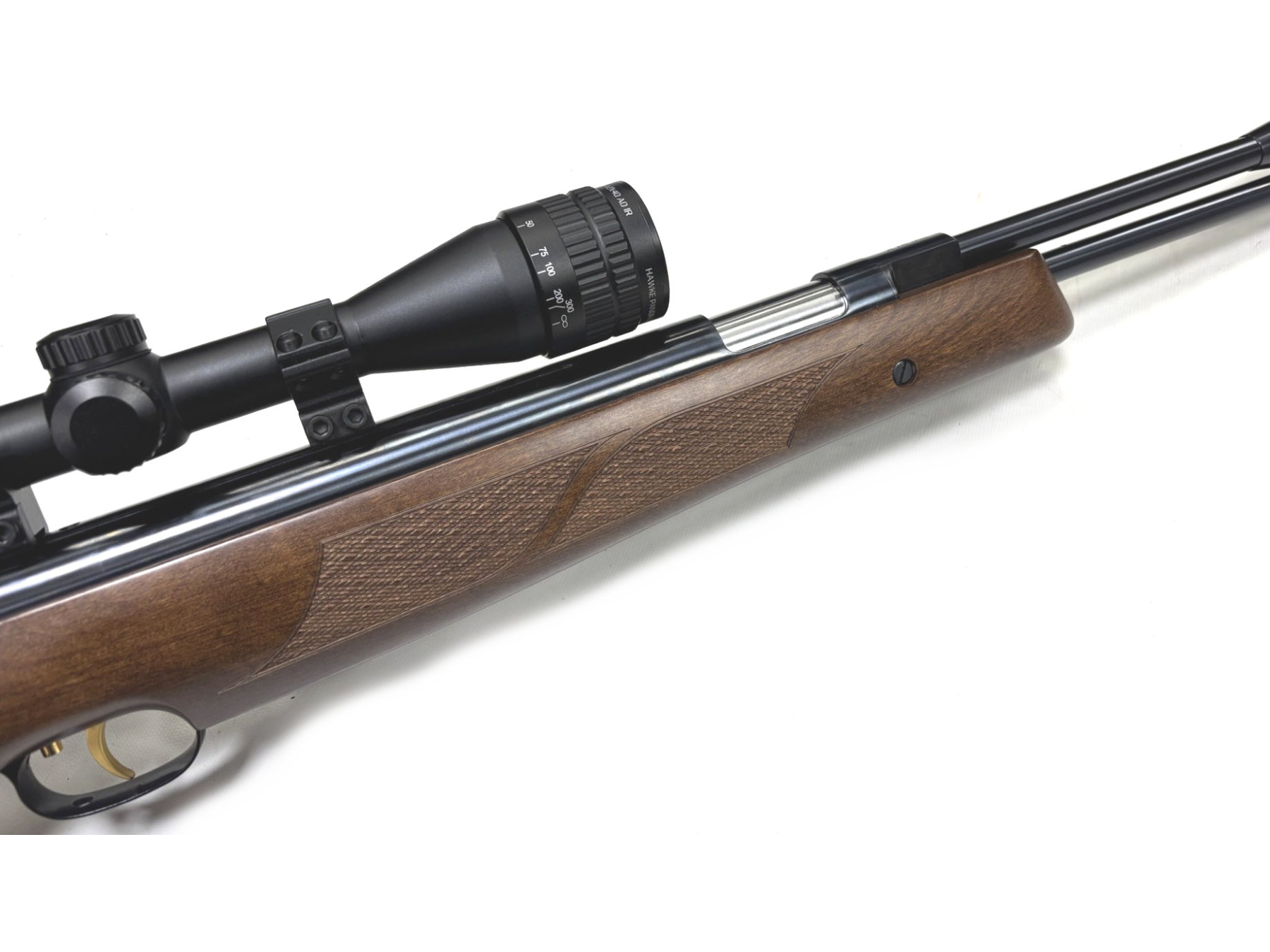 Chronographed at 11.2 ft/lbs with Air Arms Diabolo Field pellets. Fitted with a Hawke 4-12x40 Panorama AO IR scope.